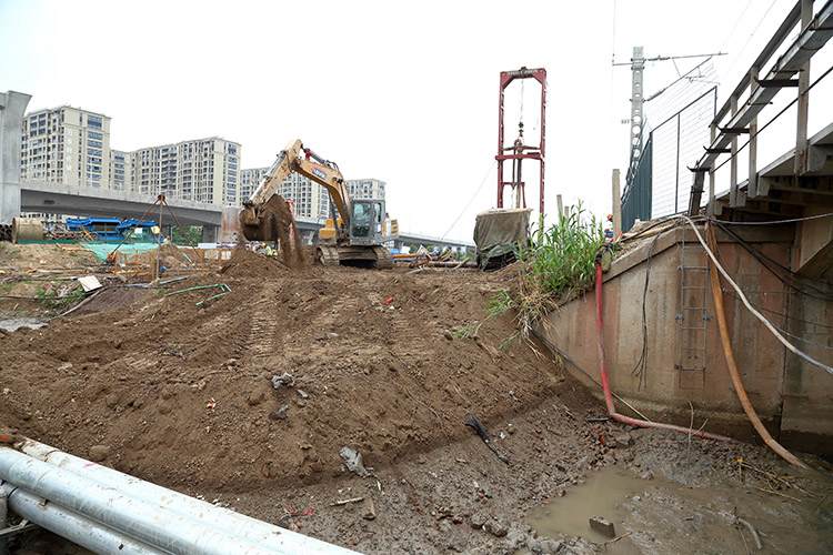 返回列表高架三期黃海路東延高架,上跨新長(zhǎng)鐵路、下穿徐宿淮鹽高鐵,全長(zhǎng)313.5米。與鐵路立交工程按規(guī)定一向由鐵路部門(mén)代建,因?yàn)槭艿借F路運(yùn)營(yíng)制約,鐵路沿線(xiàn)兩側(cè)30米保護(hù)區(qū)內(nèi)施工受到各種限制,特別是鐵路線(xiàn)區(qū)域每天可施工“空窗期”只有2個(gè)半小時(shí),施工時(shí)間十分之短,嚴(yán)重影響工程推進(jìn),從而導(dǎo)致工程進(jìn)度相對(duì)滯后,廣大市民十分關(guān)注,期盼早日實(shí)現(xiàn)通車(chē)。根據(jù)市民的呼聲,市高架辦加大與鐵路代建單位的溝通聯(lián)系,敦請(qǐng)代建單位科學(xué)組織施工,努力加快進(jìn)度。目前,施工單位調(diào)配人員、物資、機(jī)械、材料,采取平行加流水作業(yè)方式,合理穿插施工,現(xiàn)場(chǎng)人員“三班倒”作業(yè),努力把耽誤的工期奪回來(lái)。截止6月10日,黃海路東延高架立交工程74個(gè)橋墩基礎(chǔ)已全部完成;承臺(tái)墩柱完成10座,占總量70%,本月底將全面進(jìn)行橋面現(xiàn)澆箱梁施工,力爭(zhēng)十月底完成全部項(xiàng)目施工,從而實(shí)現(xiàn)黃海路高架的全線(xiàn)通車(chē)。圖為6月10日現(xiàn)場(chǎng)施工的場(chǎng)景。