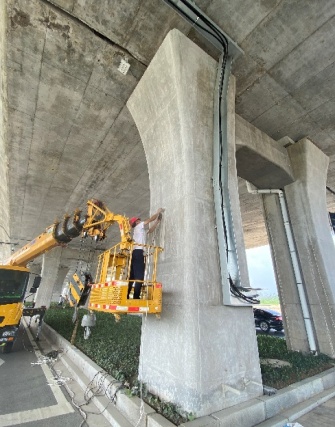 清除墩柱上的亂涂亂畫和施工中所留斑痕