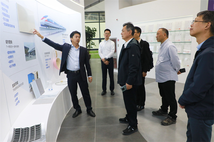 在蘇州交投中宜硅材公司,陳日曉一行在工作人員的帶領(lǐng)下參觀了企業(yè)展廳,詳細(xì)了解公司主營(yíng)產(chǎn)品——水性無(wú)機(jī)納米陶瓷膜的原料特性、應(yīng)用領(lǐng)域、成功案例等,并來(lái)到生產(chǎn)及研發(fā)區(qū)域,進(jìn)一步了解公司主營(yíng)業(yè)務(wù)布局、核心團(tuán)隊(duì)構(gòu)成及未來(lái)發(fā)展規(guī)劃。