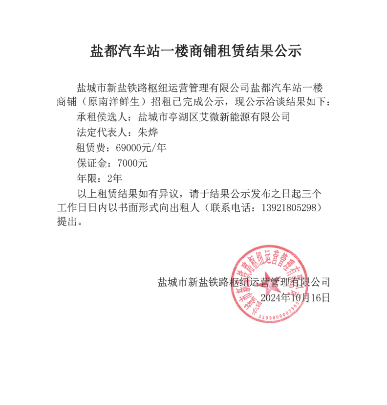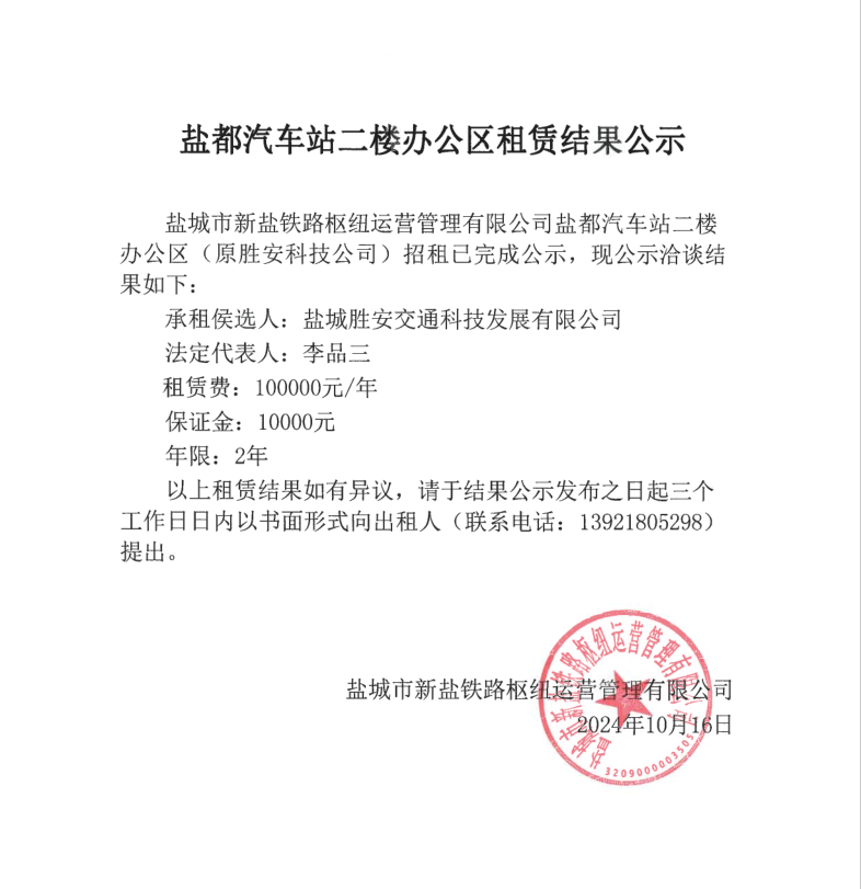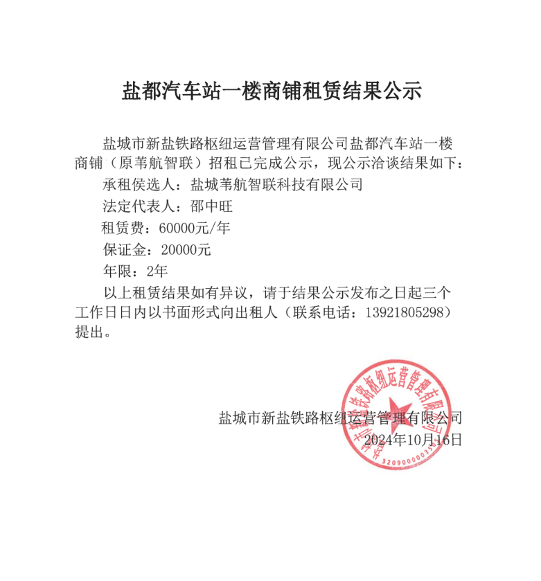 關(guān)于鹽都汽車站商鋪招租結(jié)果公示